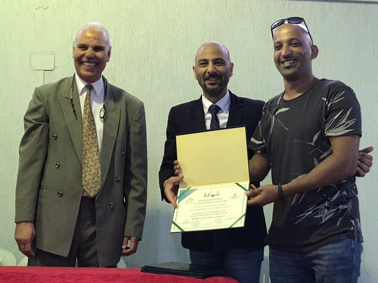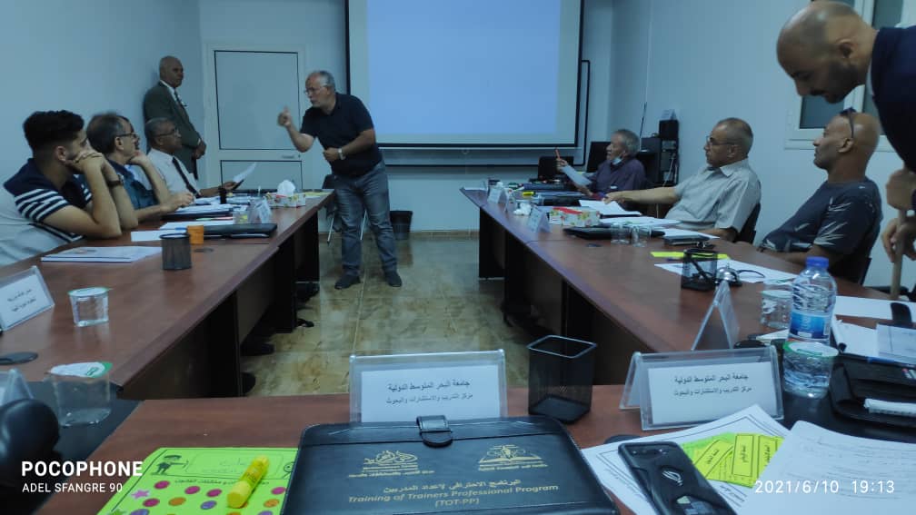 اختتمت يوم الخميس 2021/6/10 الدورة التدريبية الثالثة ” إعداد المدربين ” التي أقامها مركز التدريب والاستشارات والبحوث بجامعة البحر المتوسط الدولية و قدمها المدرب الأستاذ: إيهاب بن عيسى، وتلقى المتدربين على مدى خمسة أيام العديد من المهارات التدريبية وأساسيات بناء فريق العمل من خلال تطبيقات نظرية وعملية، كما تميزت الدورة بالمشاركة الفعالة للمتدربين وتقديمهم للعروض التقديمية المتميزة، وفي ختام الدورة قام المسئولين بإدارة الجامعة ومركز التدريب بتسليم المشاركين شهادات المشاركة بالدورة .