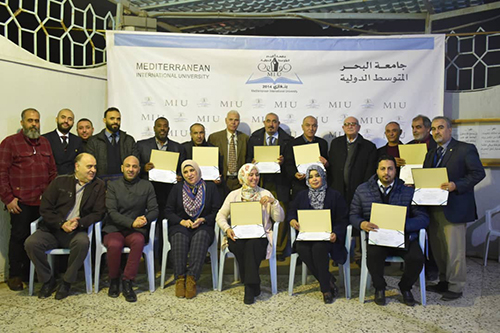اختتمت يوم الخميس 2022/01/13 الدورة التدريبية ” إعداد المدربين المحترفين ” التي أقامها مركز التدريب والاستشارات والبحوث بجامعة البحر المتوسط الدولية و قدمها المدرب الأستاذ: إيهاب بن عيسى، وتلقى المتدربين من شركة الخطوط الجوية على مدى خمسة أيام العديد من المهارات التدريبية وأساسيات بناء فريق العمل من خلال تطبيقات نظرية وعملية، كما تميزت الدورة بالمشاركة الفعالة للمتدربين وتقديمهم للعروض التقديمية المتميزة، وفي ختام الدورة قام المسئولين بإدارة الجامعة ومركز التدريب بتسليم المشاركين شهادات المشاركة بالدورة .