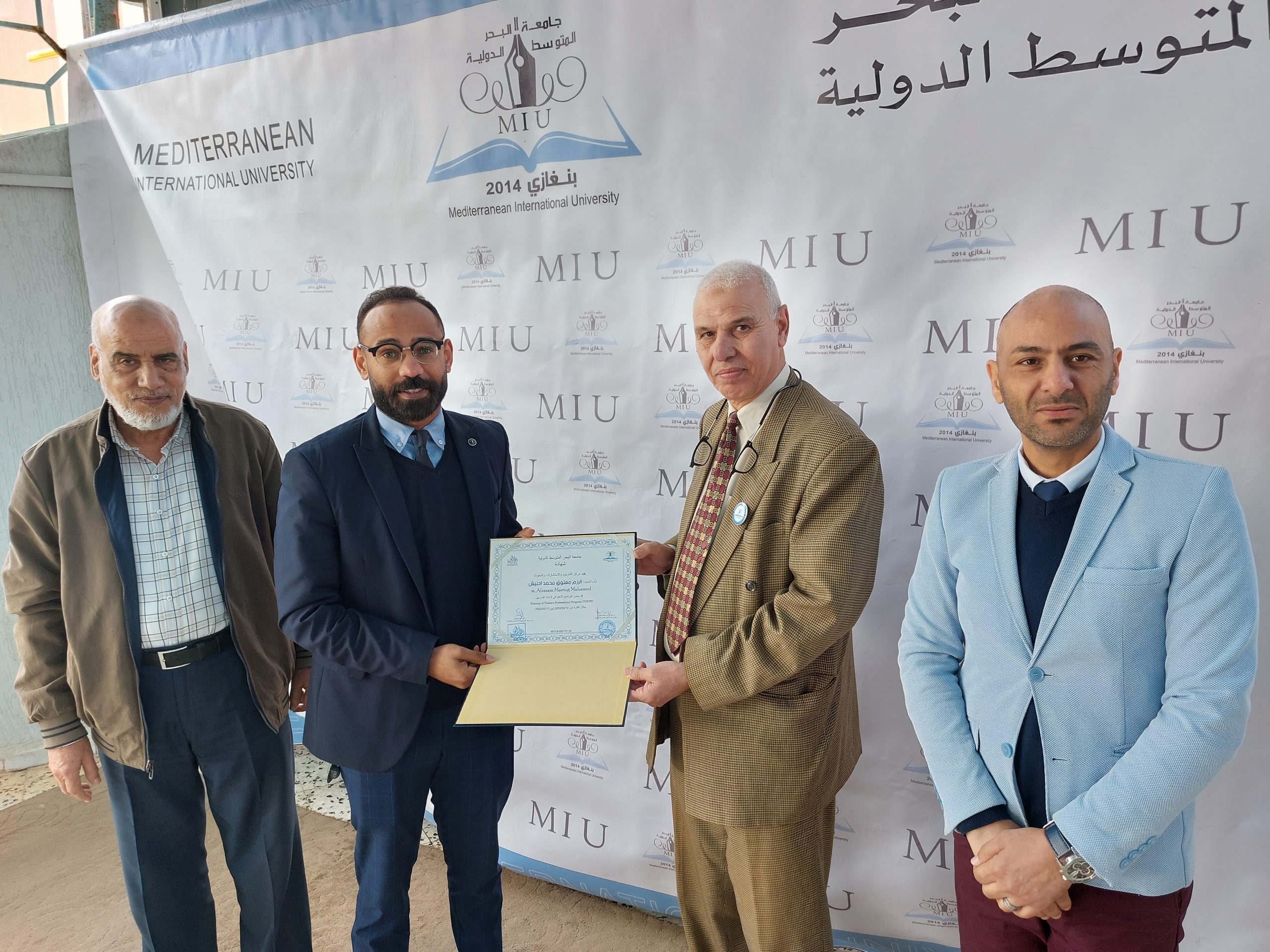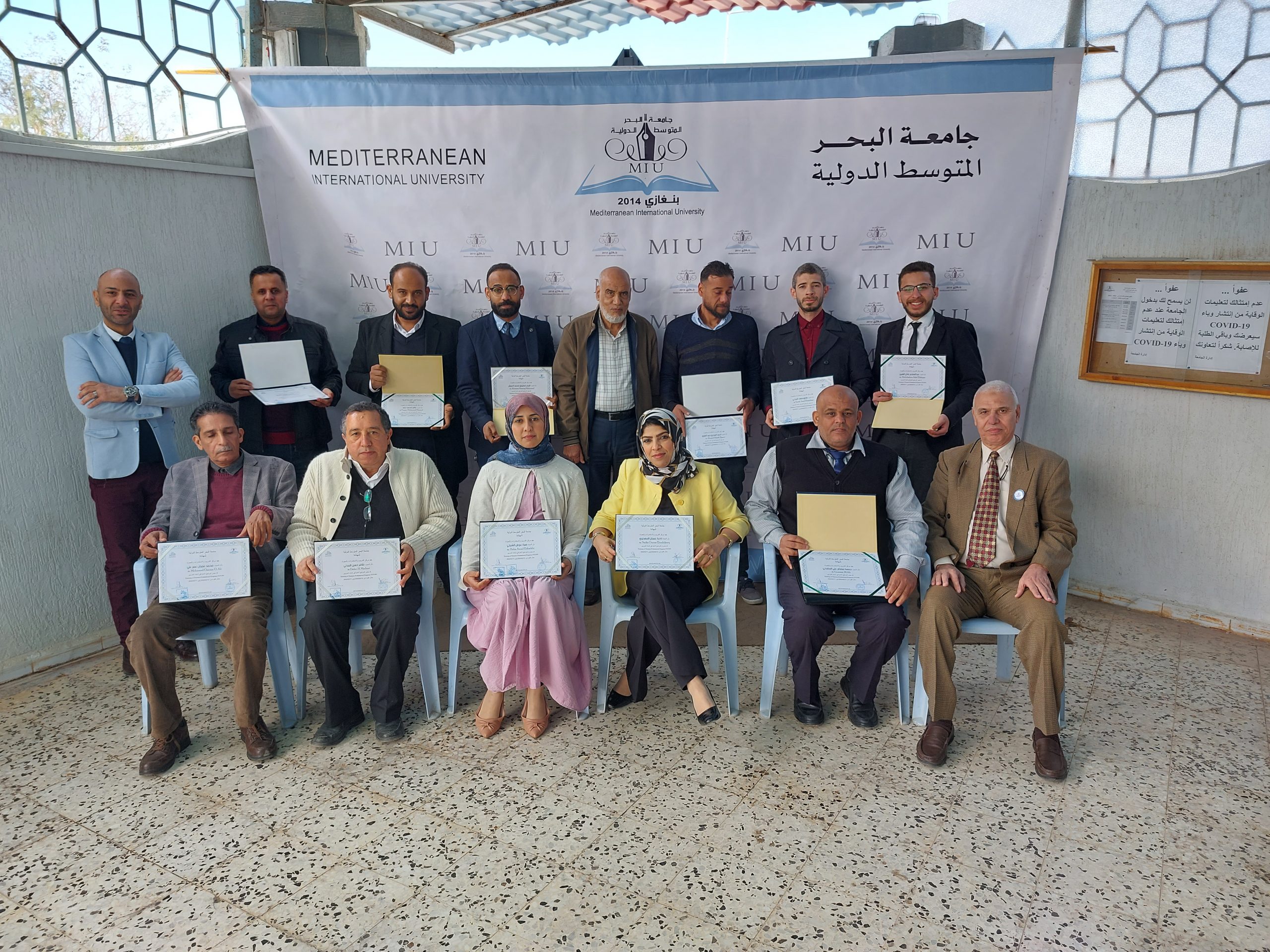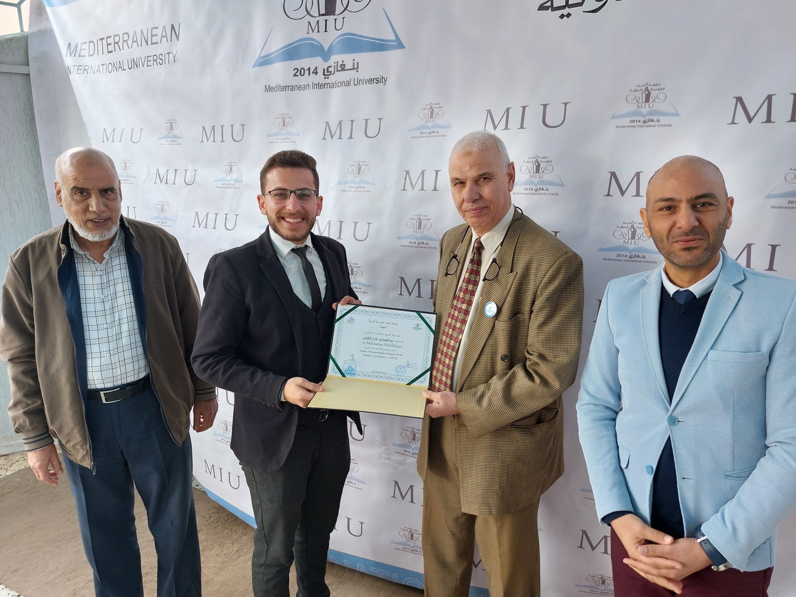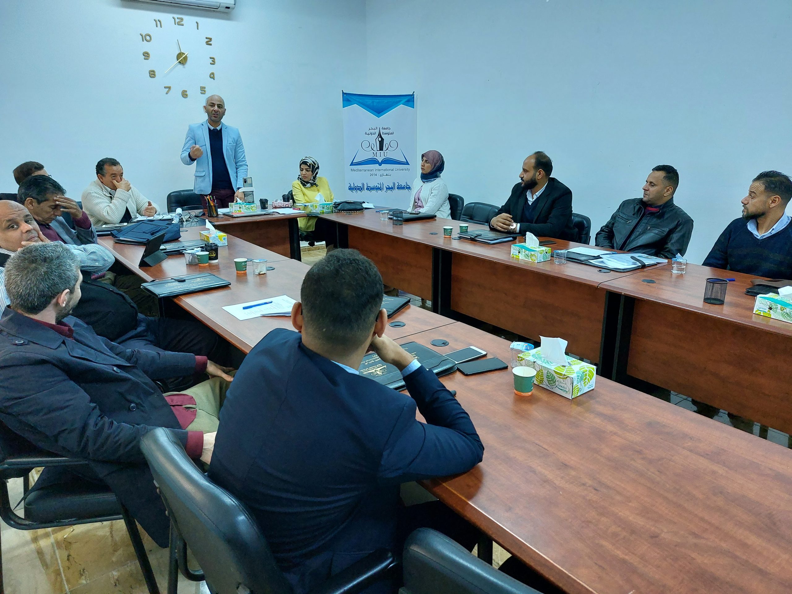 اختتمت يوم الخميس 2022/02/17 الدورة التدريبية ” إعداد المدربين المحترفين ” التي أقامها مركز التدريب والاستشارات والبحوث بجامعة البحر المتوسط الدولية و قدمها المدرب القدير الأستاذ: إيهاب بن عيسى، وتلقى المتدربين المشاركين في هذه الدورة على مدى خمسة أيام العديد من المهارات التدريبية وأساسيات بناء فريق العمل من خلال تطبيقات نظرية وعملية، كما تميزت الدورة بالمشاركة الفعالة للمتدربين وتقديمهم للعروض التقديمية المتميزة، وفي ختام الدورة قام المسئولين بإدارة الجامعة ومركز التدريب بتسليم المشاركين شهادات المشاركة بالدورة .