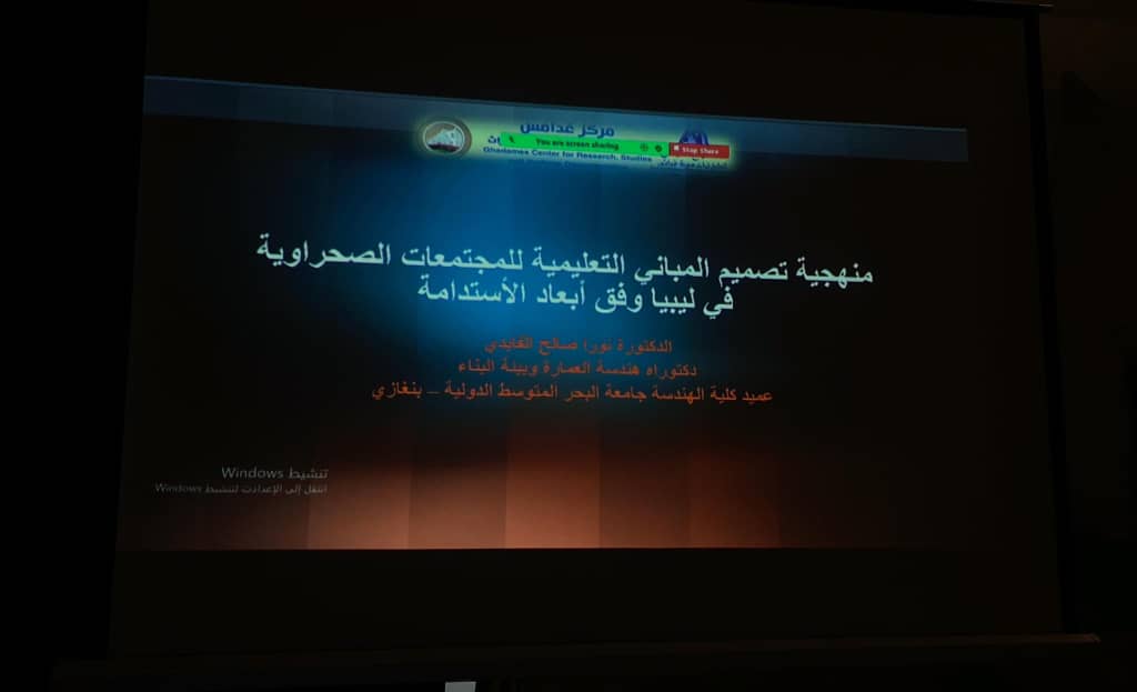 11 مارس، 20234 سبتمبر، 2023 by Ahmed Alsaid Comment Closed تشارك الدكتورة نورا الفايدي عميد كلية الهندسة -قسم الهندسة المعمارية والتصميم، ممثلة لجامعة البحر المتوسط الدولية في فعاليات المؤتمر العلمي الدولي حول العمارة في المدن الصحراوية المنعقد في مدينة غدامس في دورته الثالثة، 9 -11 مارس 2023.