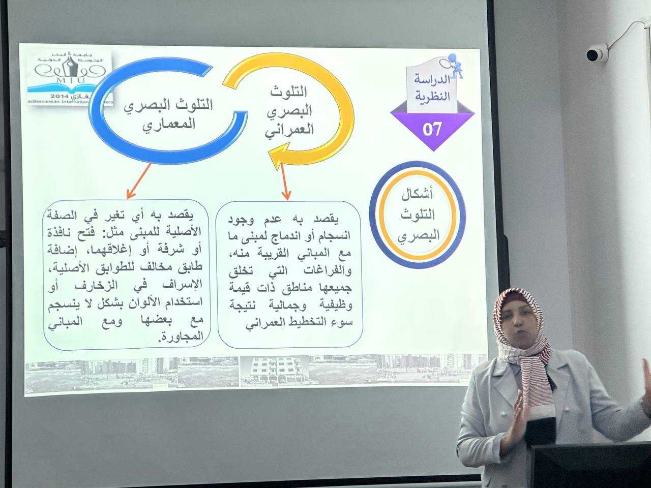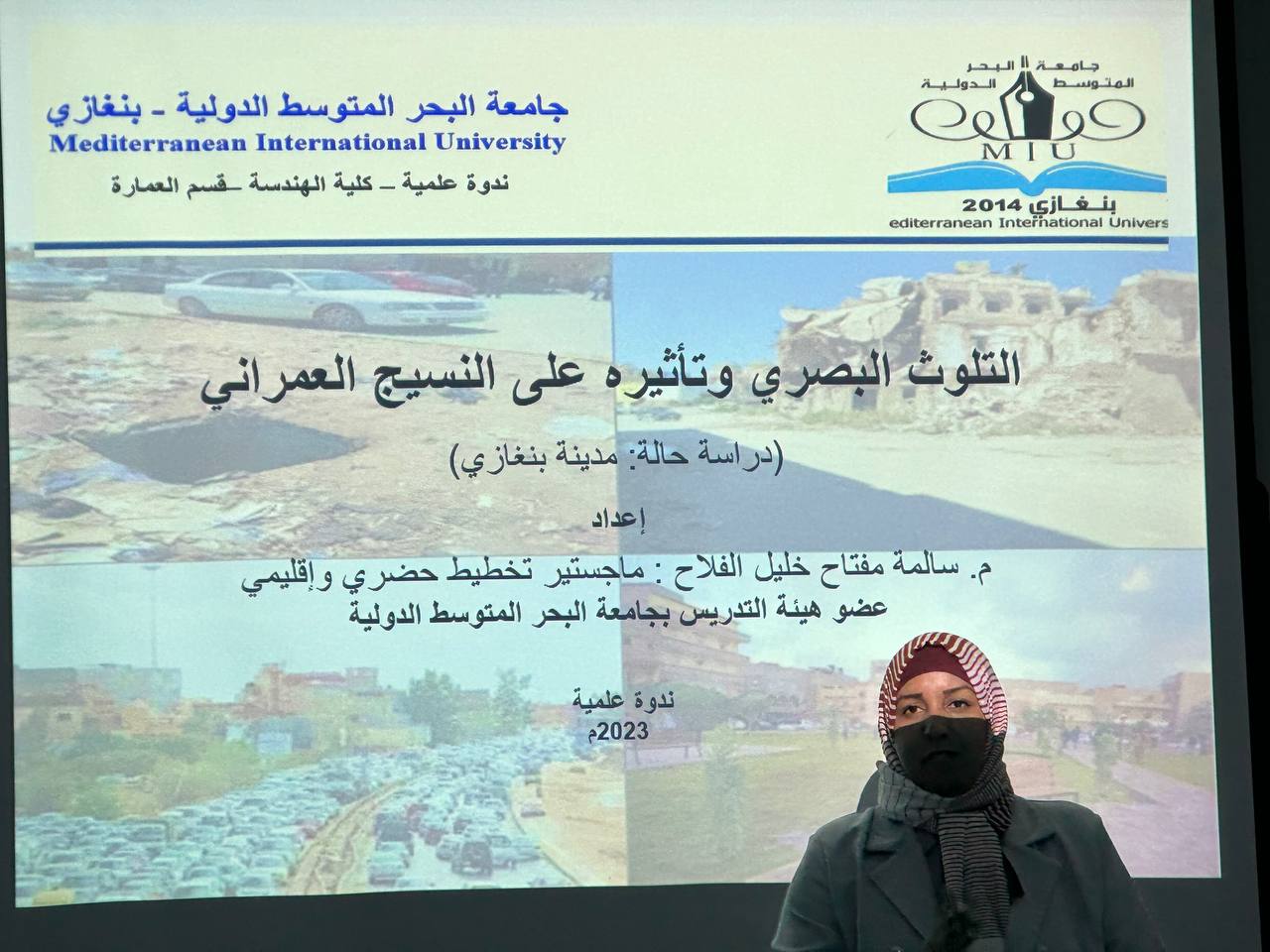 استمراراً لبرنامج التطوير المهني ورفع القدرات، نظمت كلية الهندسة بجامعة البحر المتوسط الدولية صباح يوم الاحد30/7/2023 محاضرة علمية بعنوان “التلوث البصري وتأثيره على النسيج العمراني ( مدينة بنغازي) أعدتها وقدمتها الأستاذة سالمة مفتاح خليل الفلاح . تناولت المحاور التالية :