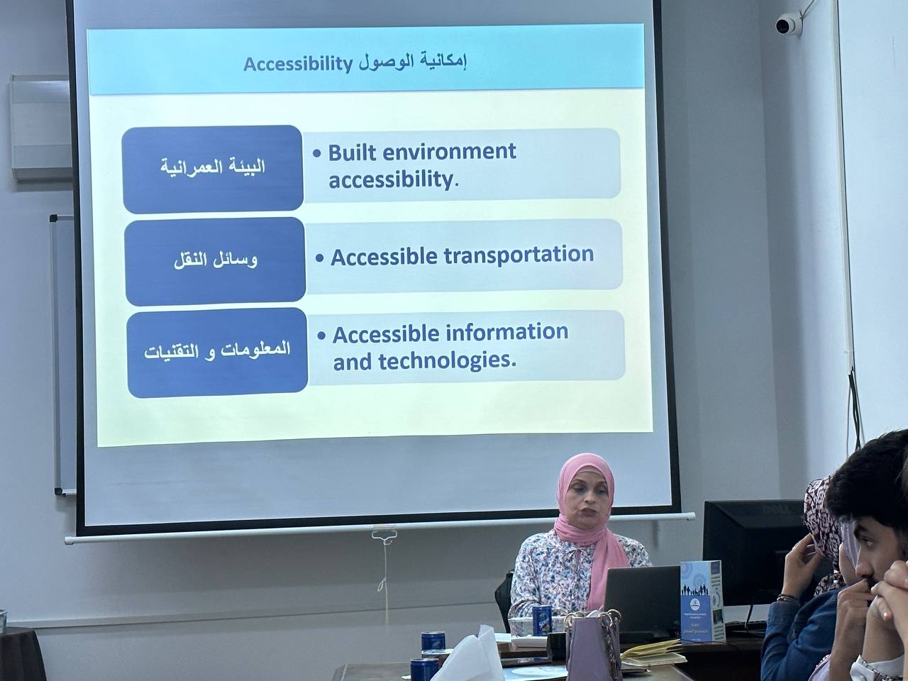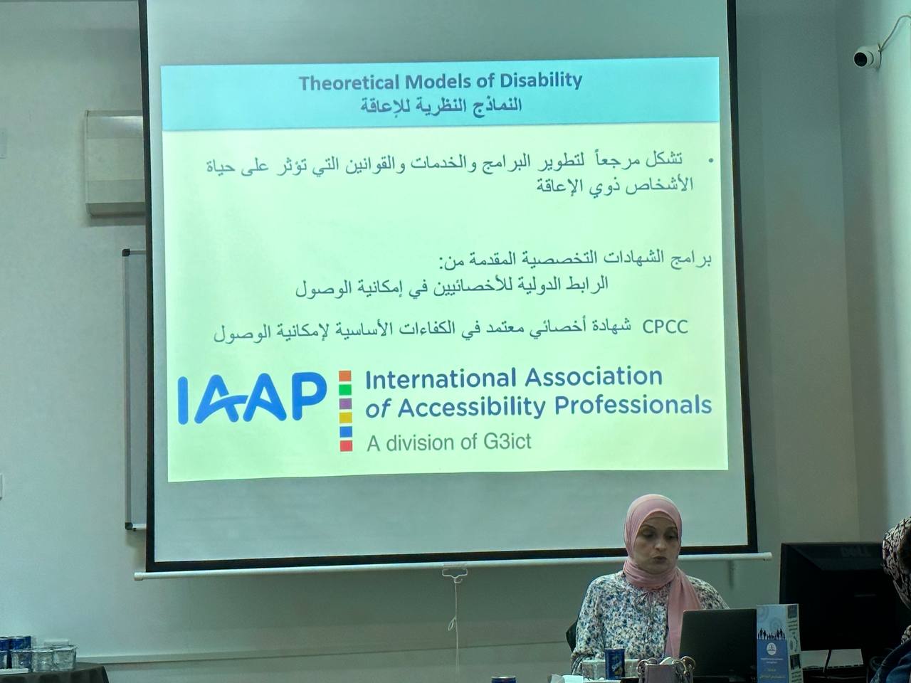 حيث استعرضت المحاضرة العوائق التي تحول دون وصول الأشخاص ذوي الإعاقة لمواقع الشبكة العنكبوتية (الويب). فعرضت النماذج النظرية للإعاقة والتي تعتبر وجهات نظر مقدمة من مهتمين و أكاديميين تساهم في فهم الإعاقة. ثم تناولت التحديات و الحلول الاستراتيجية .وفي الختام أكدت على أهمية المعرفة الأكاديمية التي تستند على دراسة كافية عن طبيعة المستخدم و معرفة بكيفية تطبيق المعايير الدولية التي تحقق إمكانية الوصول لتقنية المعلومات.